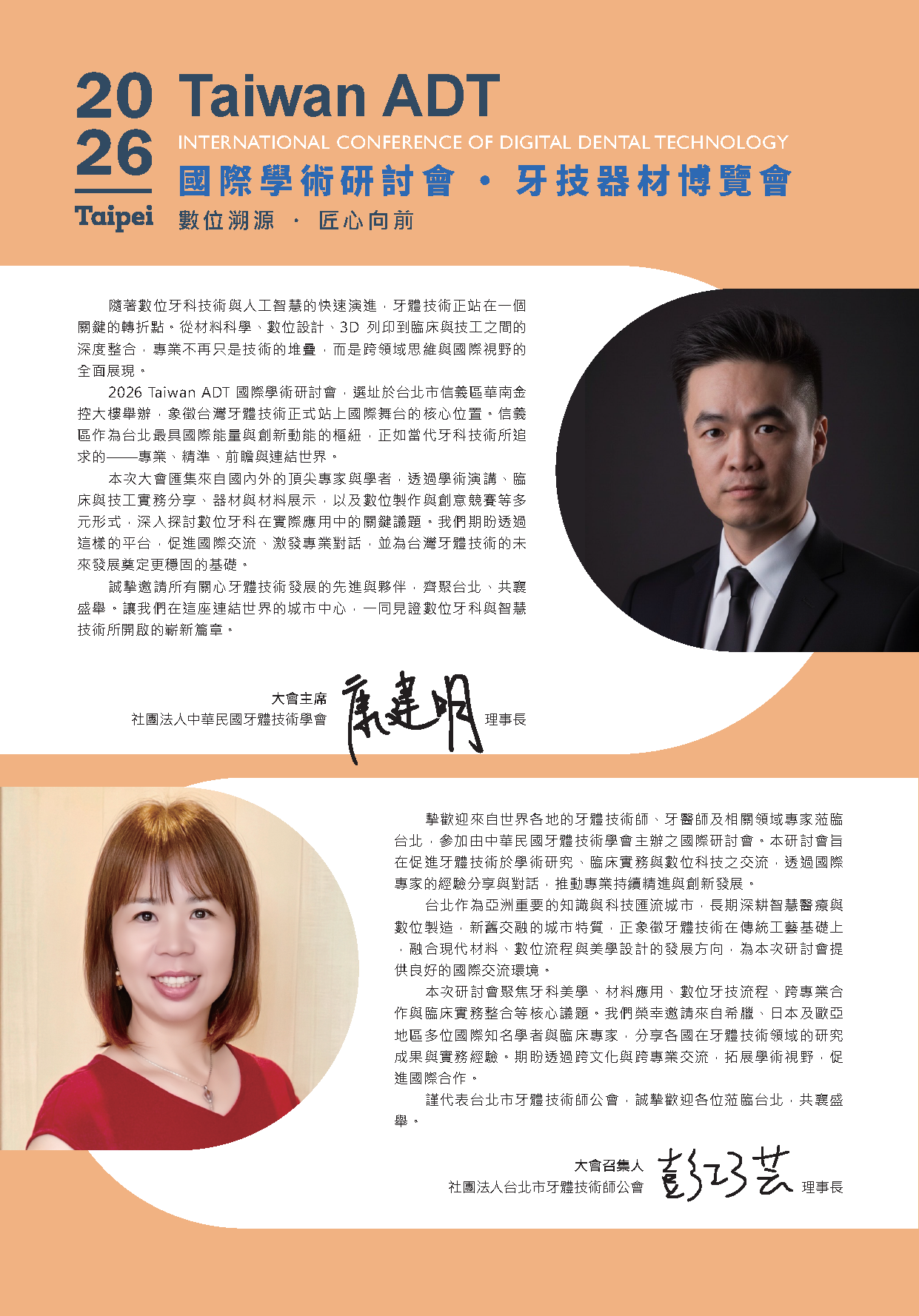 2026 Taiwan ADT 數位溯源.匠心向前國際學術研討會暨牙技器材博覽會